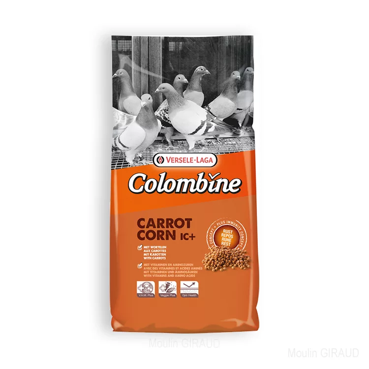 Colombine Carrot-Corn Plus I.C.+ est un granulé extrudé (précuit) facile à digérer, riche en carottes, qui se donne en complément du mélange de graines.