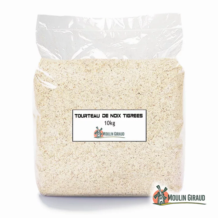 Alors que pour le Tourteau de noix tigrées, on a d'abord extrait son huile, ses matières grasses (lipides) pour ensuite le moudre.