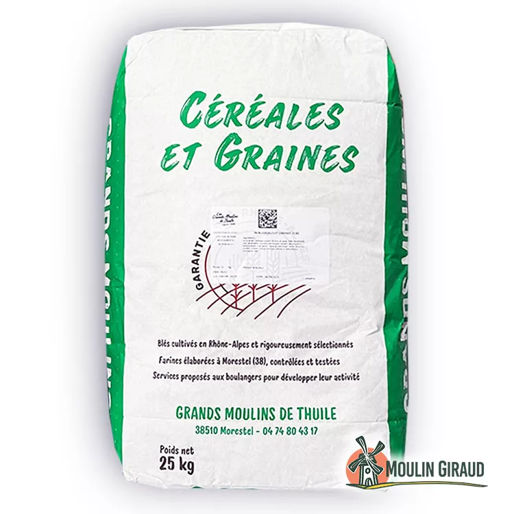 La farine Céréales et Graines est fabriquée en région Rhône Alpes par les Moulins de Thuile. Les céréales proviennent de producteurs locaux de la région.