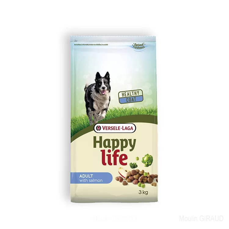 Votre chien est un vrai gourmand et rêve de manger ? Alors, faites de ces rêves une réalité ! Les savoureuses croquettes Happy life font de chaque repas une fête. Avec des ingrédients naturels et des saveurs irrésistibles, vous offrez à votre chien une expérience culinaire qui contribue à sa santé et fait monter ses papilles au septième ciel !