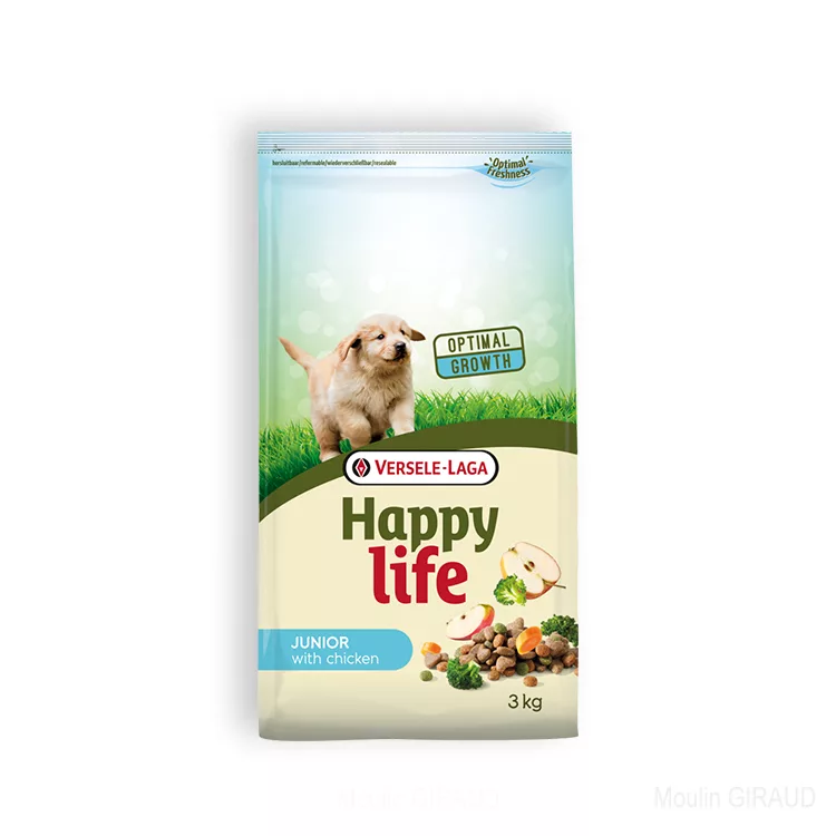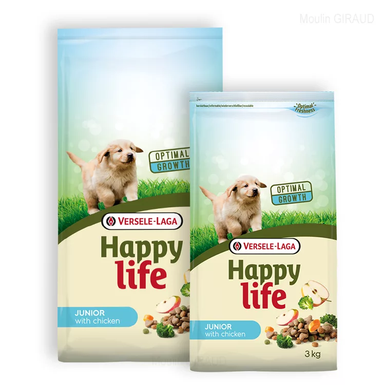 Happy life Junior au Poulet contient tous les éléments nutritifs nécessaires à une croissance et une vitalité optimales.