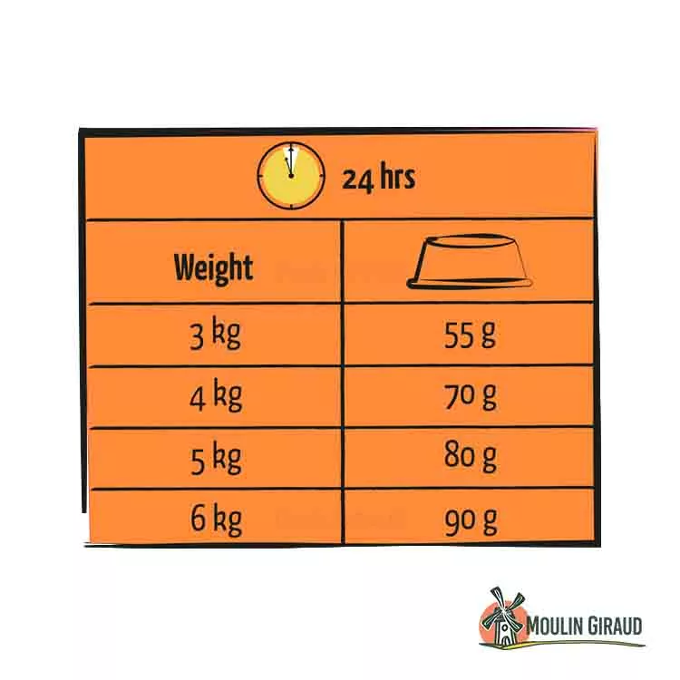 Ration journalière à donner à votre chat selon son poids :