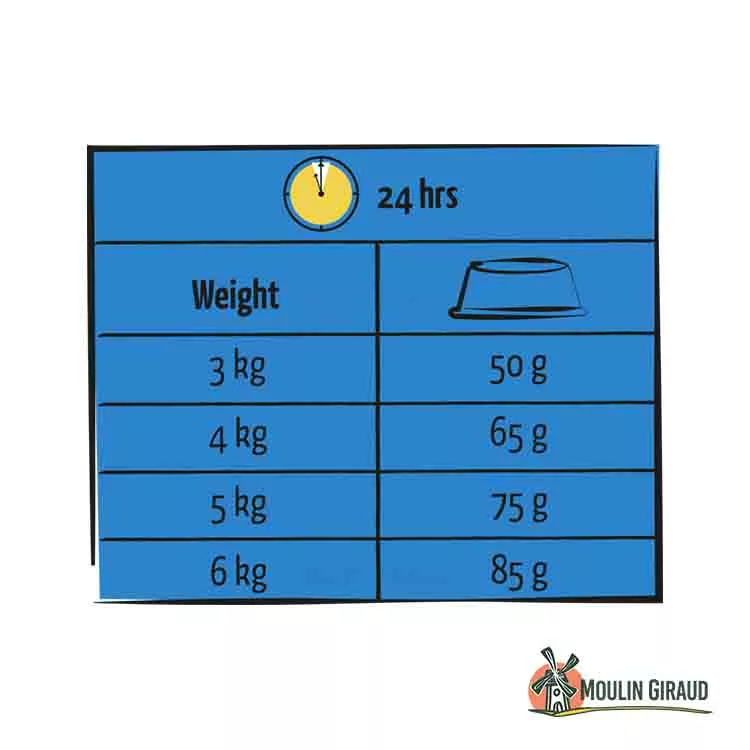 Ration journalière à donner à votre chat selon son poids :