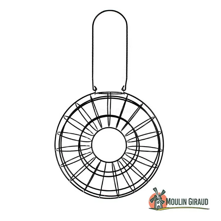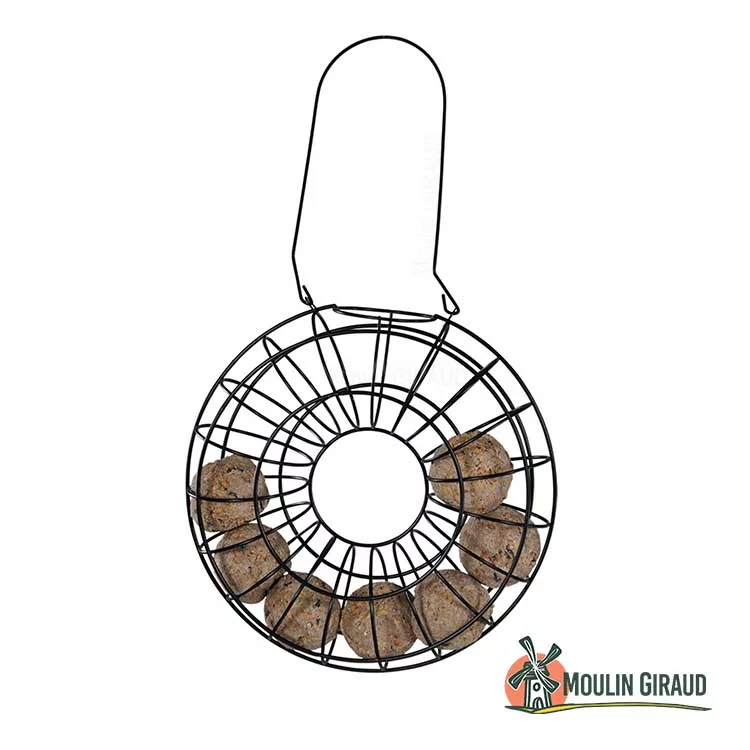 Installé dans votre jardin et garni de nourriture, cette mangeoire ou porte boules permettra aux oiseaux d'obtenir l'apport en graisse nécessaire pour affronter les longs mois d'hiver.