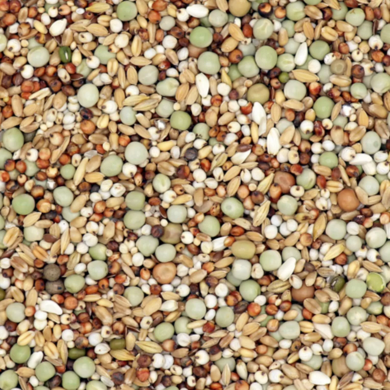 C'est un mélange équilibré, riche en pois vert (16%), et qui ne contient pas de petit maïs.